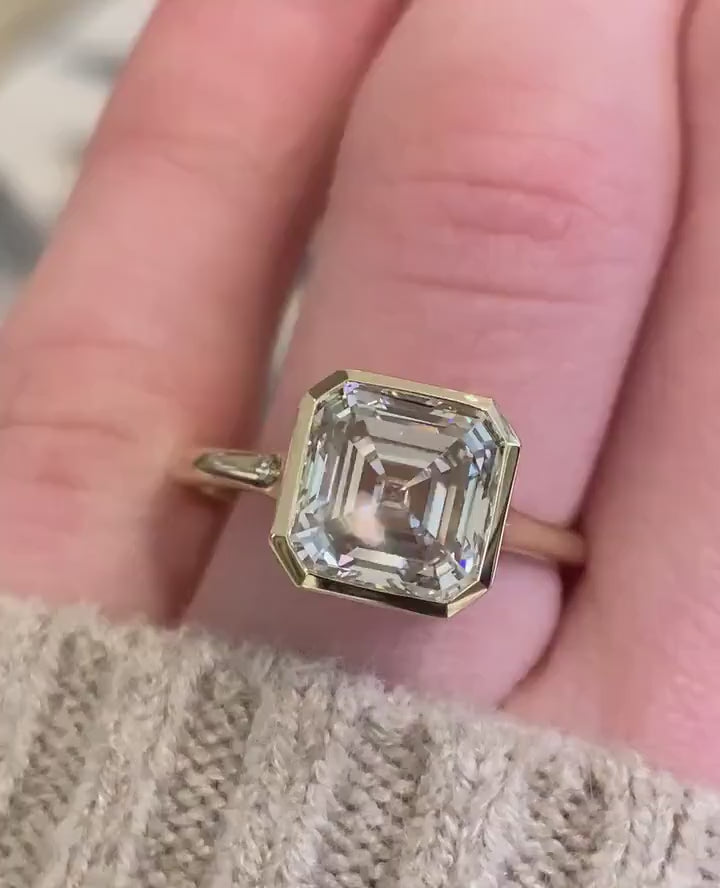 Asscher 2.71ct Lab Grown Diamond Ring Full Bezel Minimalist Diamond Ring Promise Ring For Her