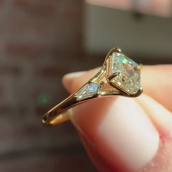 Asscher 2.50ct Lab Grown Diamond Ring Side Kite Anniversary Ring Unique Bridal Ring