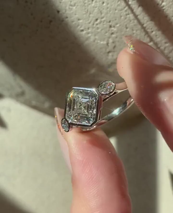 Asscher 2.80tcw Lab Grown Diamond Ring Full Bezel Promise Ring Classic Wedding Ring