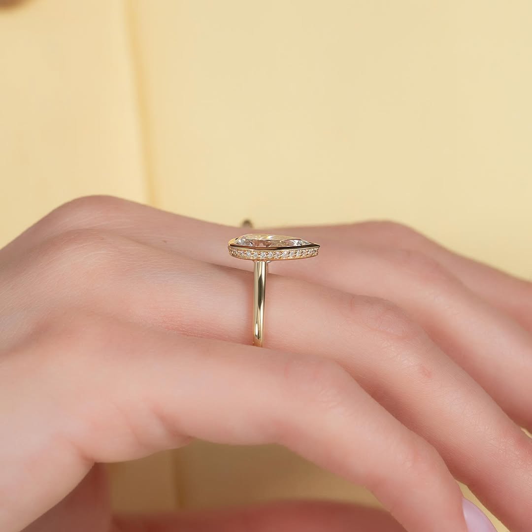 2.0ct Pear Cut Lab grown Diamond Solitaire Ring With Full Bezel & Hidden Halo