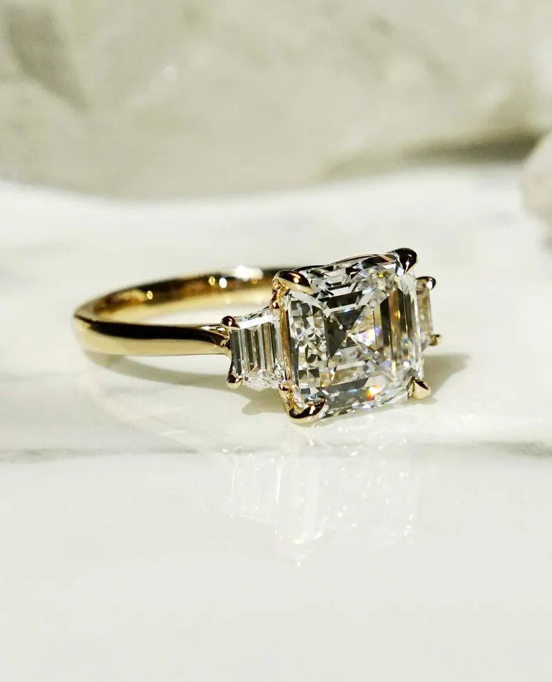 Asscher 6.0tcw Lab Diamond Ring Three Stone Birthday Gift Ring Proposal Ring For Her