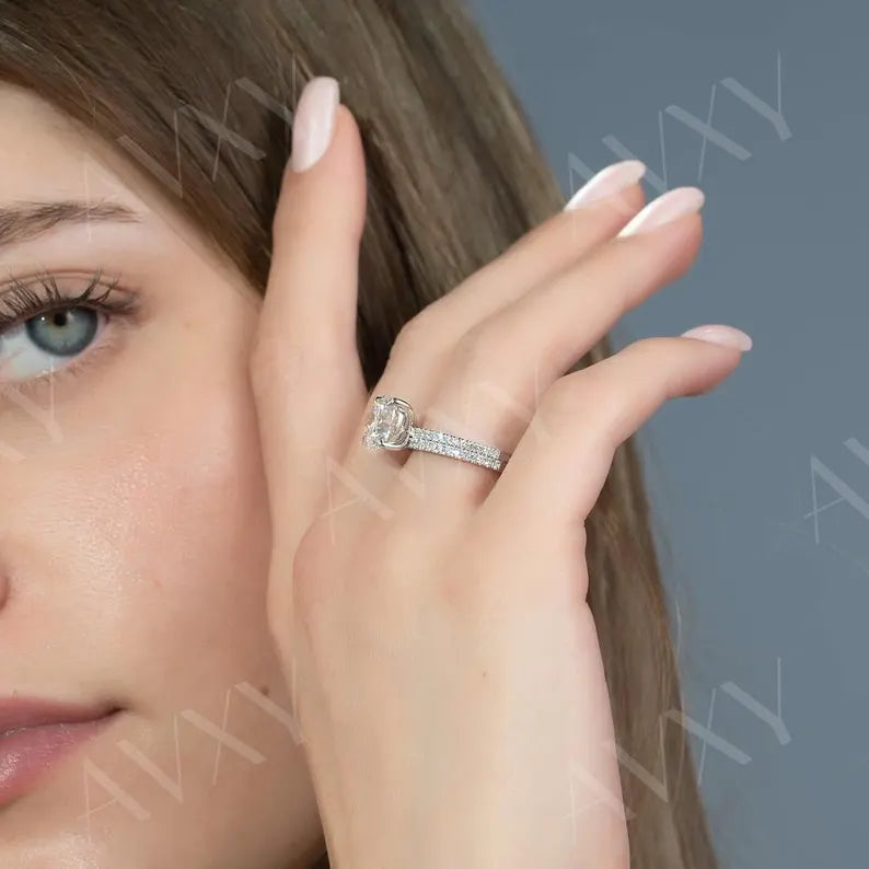 2.00ct Round Lab Grown Diamond Engagement Ring | Pave Band Setting | IGI Certified