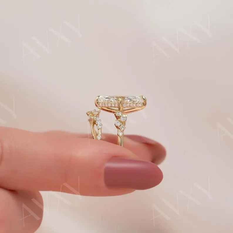 Marquise 3.00CT Lab Grown Diamond With Twisted Pave Band Engagement Ring Promise Ring Forever One Ring Gifts for Girlfriend Ring For Her