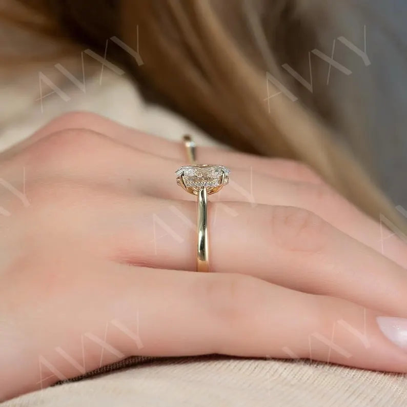 2.00 CT Oval Cut Lab Grown Diamond Engagement Ring | Hidden Halo | IGI Certified