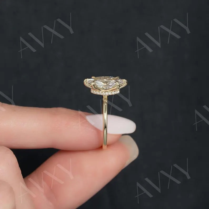 Marquise 3.00CT Lab Grown Diamond Hidden Halo Solitaire Engagement Ring Proposal Ring Forever One Ring Hidden Halo Diamond Ring Gift For Mom